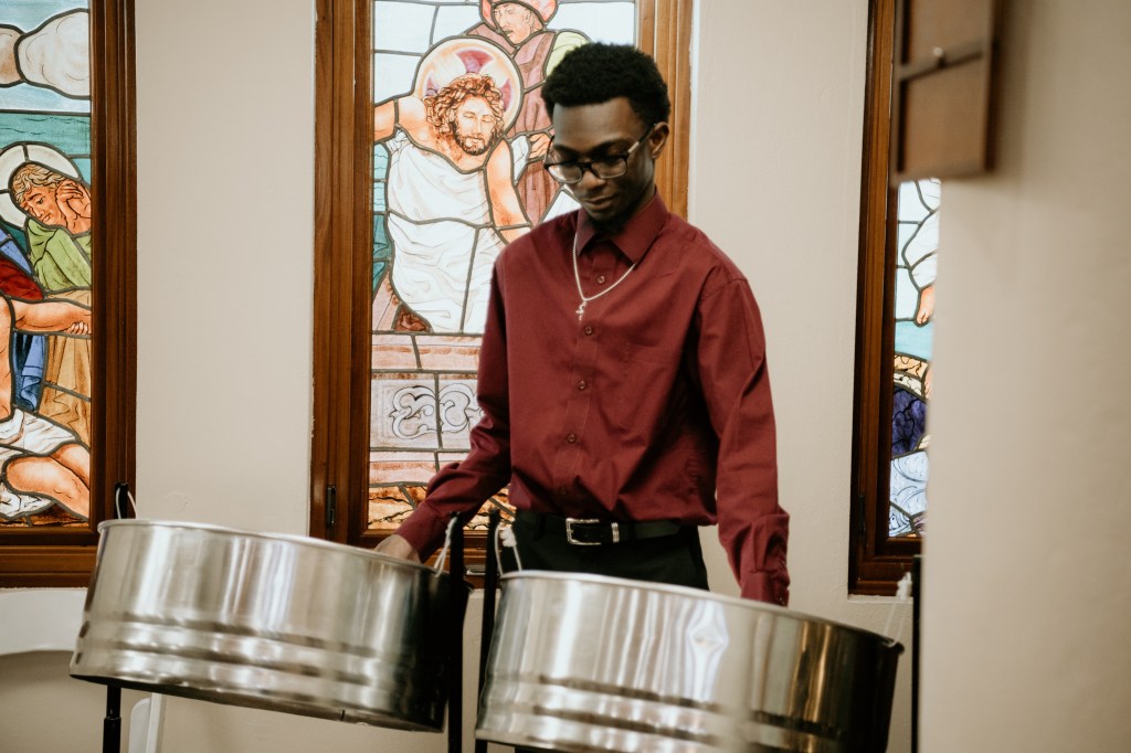 I hired a local musician to play both the piano and the steel drums for the ceremony. My bridesmaids walked down the aisle to Can’t Help Falling in Love on the piano, but had the steel drums for the exit and signing of the documents (I told him to play whatever). I loved it. (P.S. our MOH and BM signed the documents during the ceremony. I have never seen this happen at other weddings, but it is what they do in the VI!)