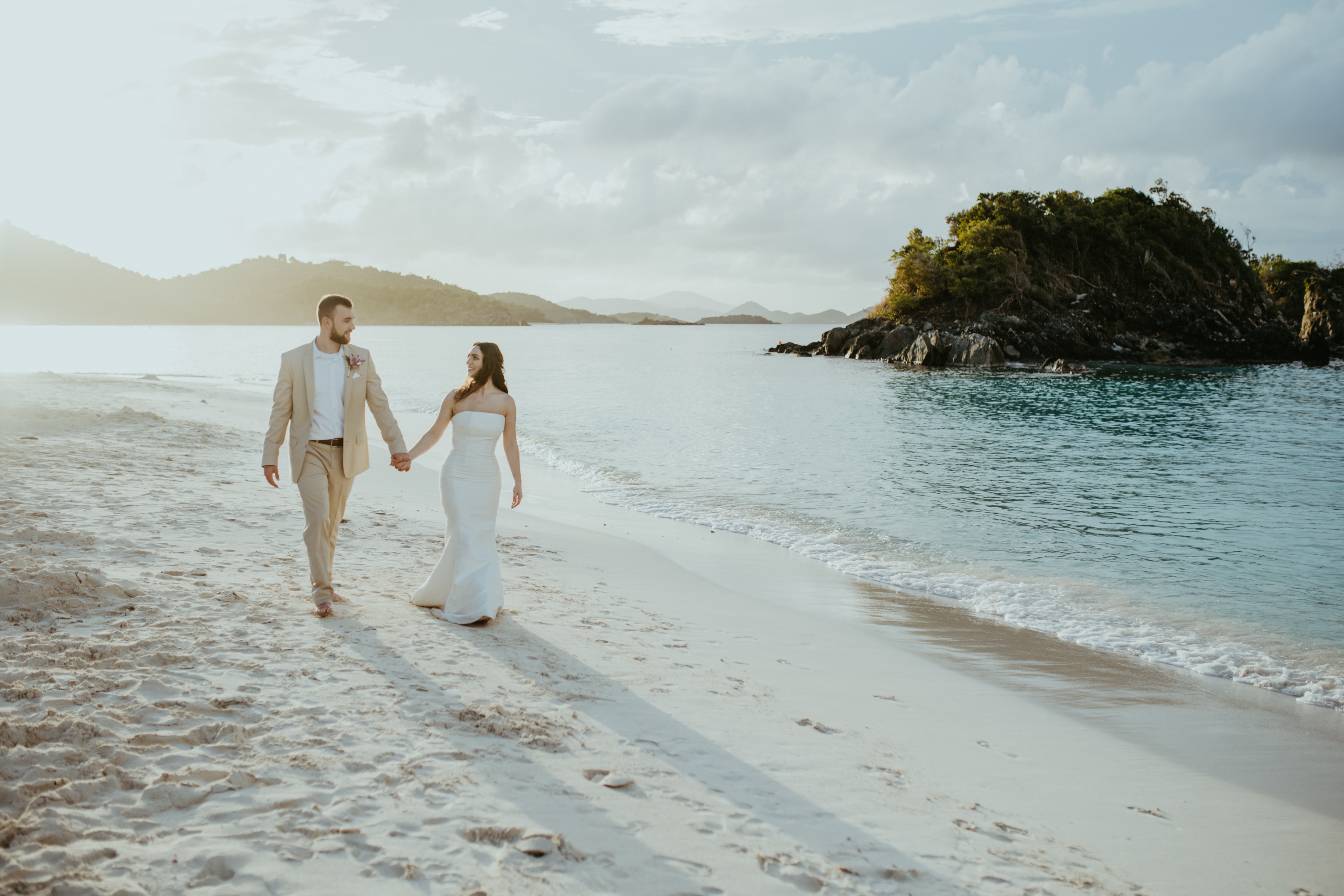 Andrew and I wake up in our private villa excited to be married. But, we’ve got things to do! We wake up way earlier than we wanted to and grabbed a taxi to Hawksnest Beach. We needed to be the first ones there to set up our morning after brunch. We had it delivered from Sam and Jacks and rented a beach front pavilion through the National Park.