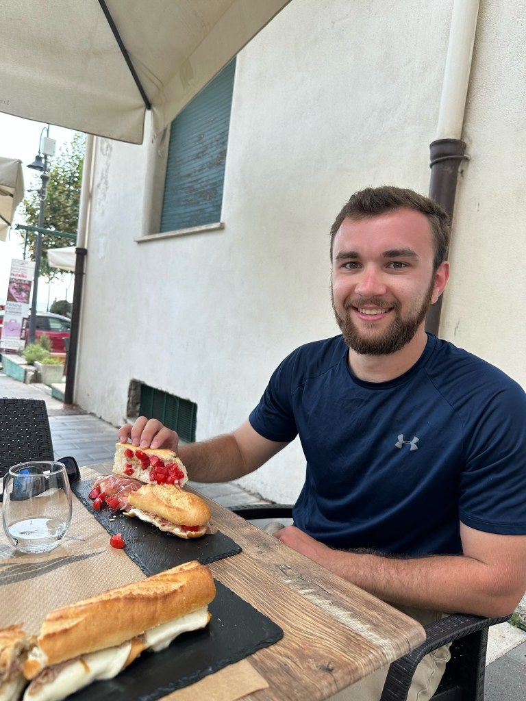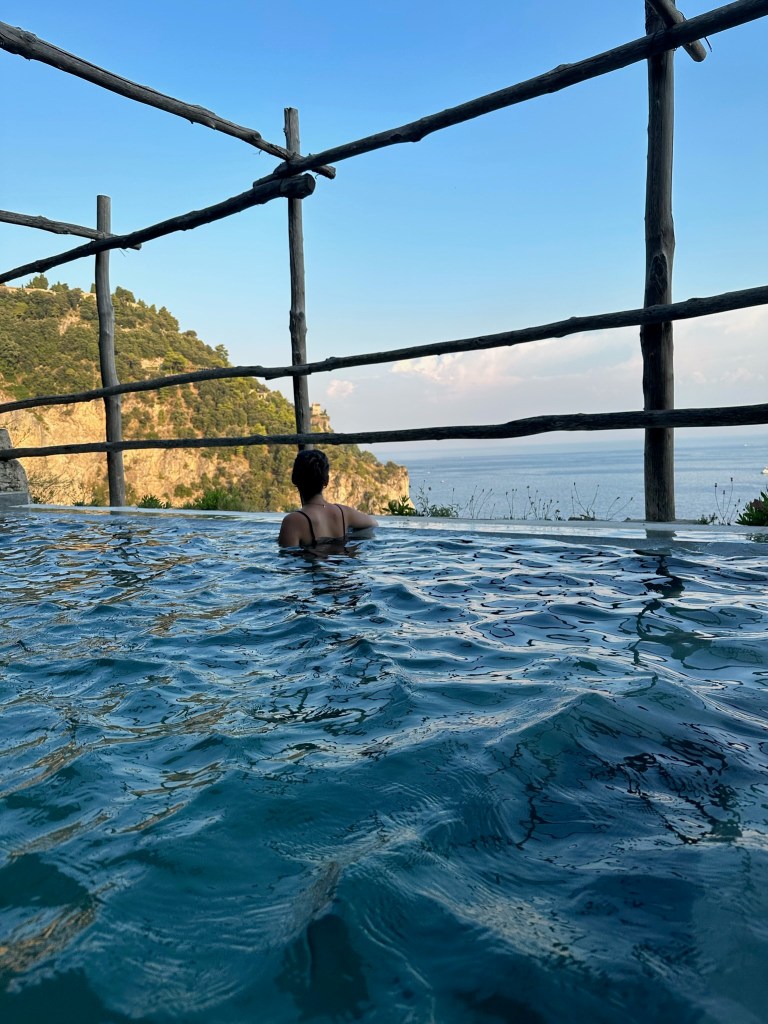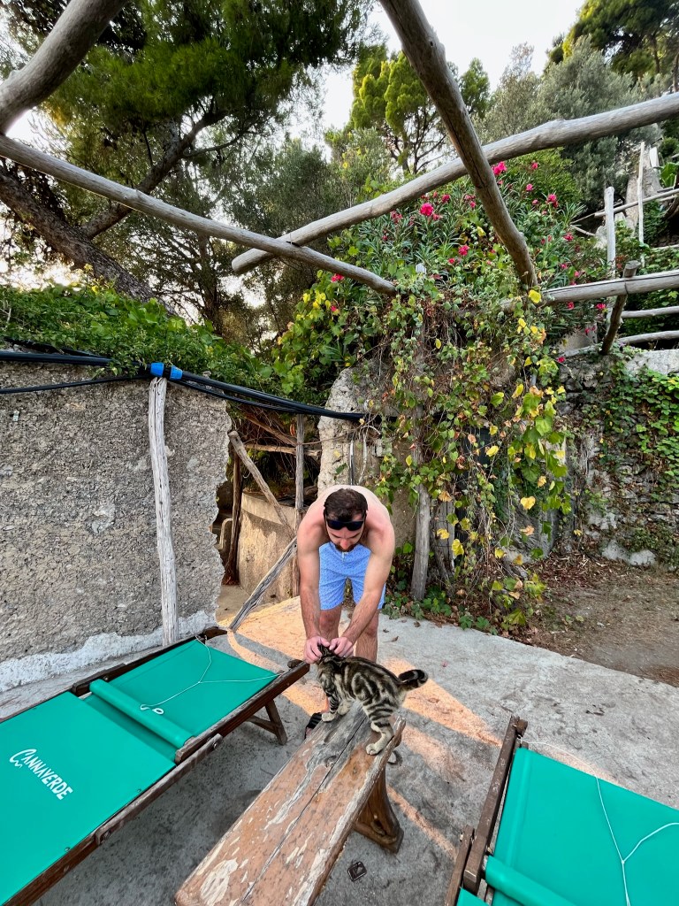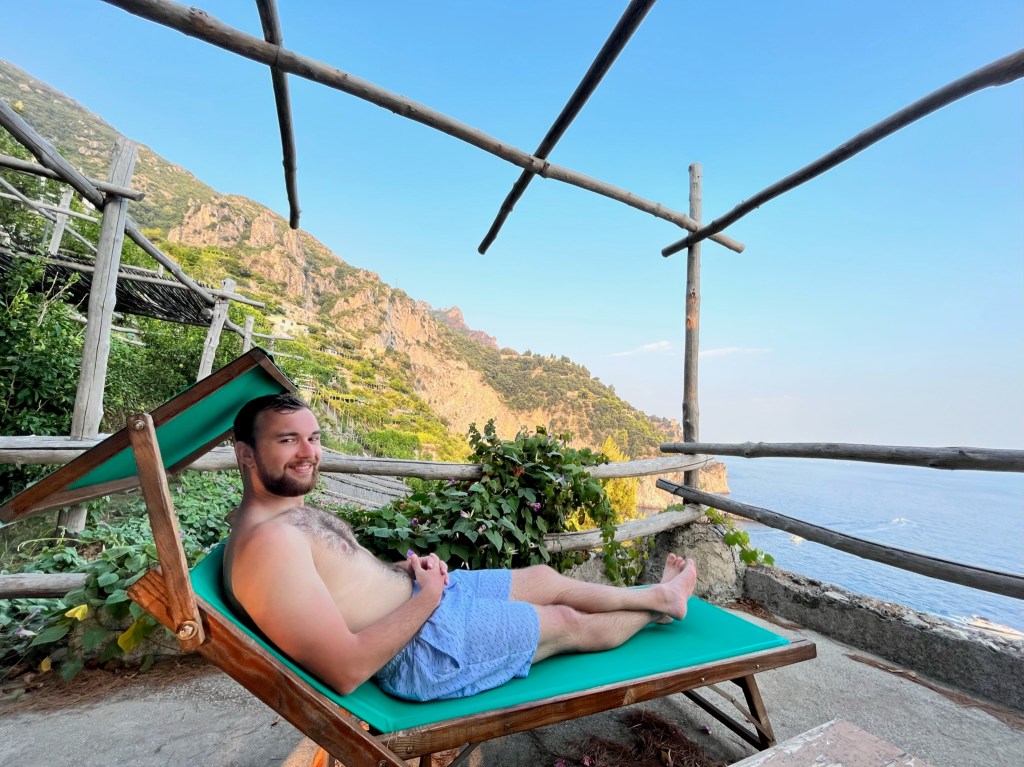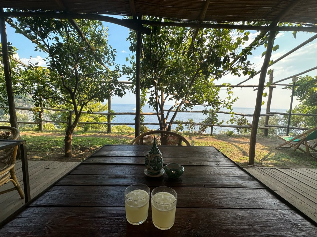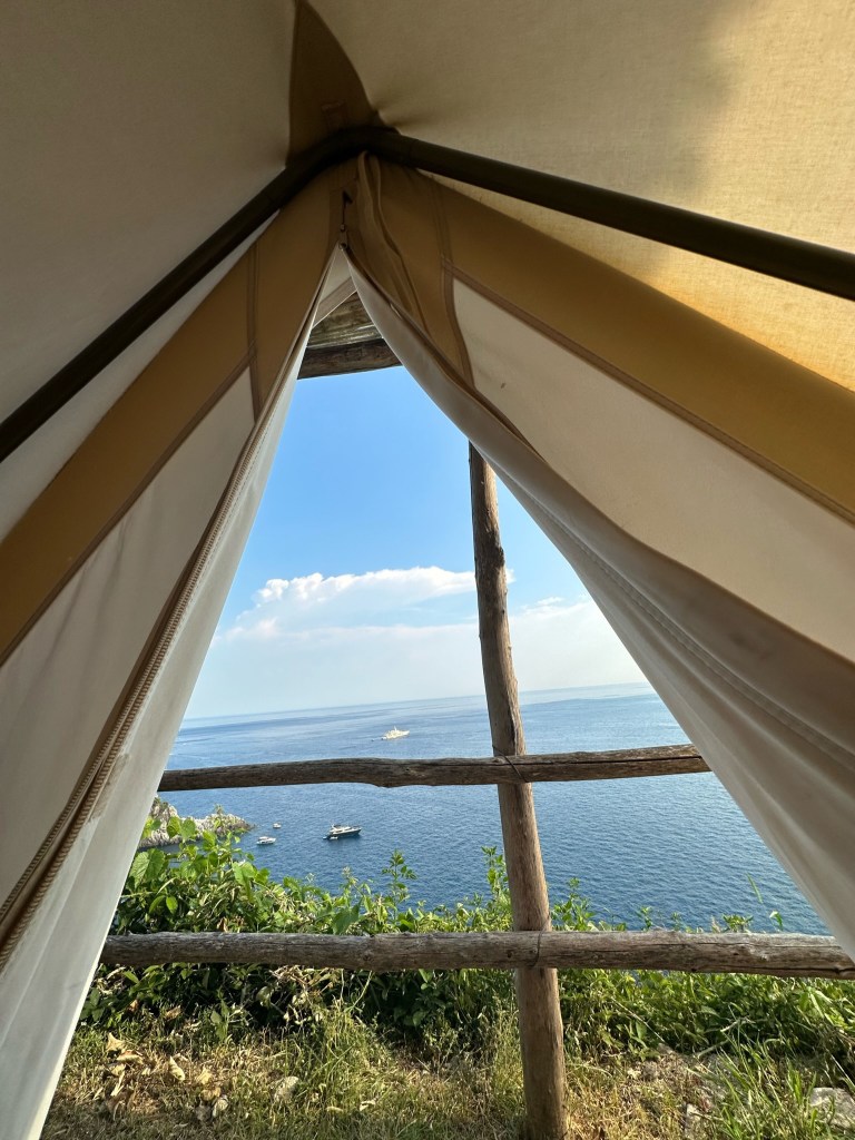 Cannaverde was a highlight of the trip. We had a private bathroom, a yurt tent, a shared infinity pool with a view overlooking the sea, and other relaxation stops. Our tent was next to the eggplant famr, and of course under lemon trees. The owners use this camp as a lemon farm in the winter and rent it out for tents in the summer. It was so hot during the day, but the tents cooled down enough at night that it was quite comfortable. They know what they are doing when it comes to food…each night there are group dinners you can pay extra to participate in. We decided to give it a try because we felt like we traveled enough that day and didn’t want to go back to the town of Maiori.