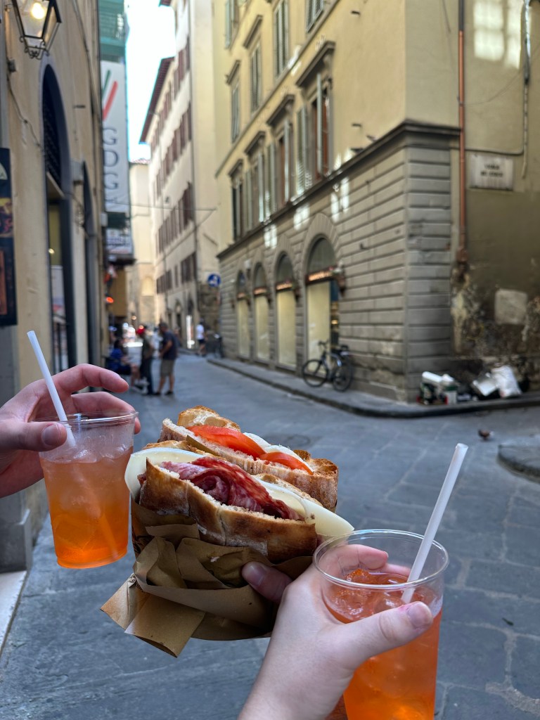 Eat Lunch at I’Girone De’Ghiotti : very quick and freshly made sandwiches at 5 euros each. We scored 2 aperol spritz to go! (However, there are not many seats here, so there’s a chance you will stand on the sidewalk, drop a piece of tomato, and get yelled at by a different store owner to shoo. There just might be a chance of that)