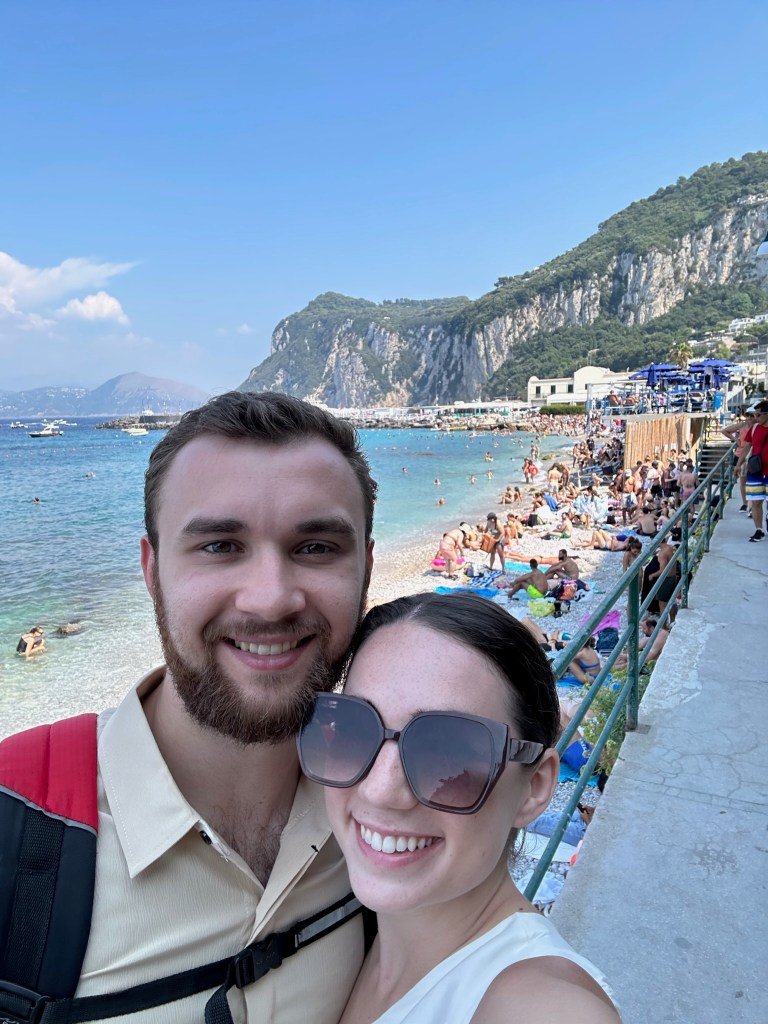 Swim at Marina Grande Public Beach: it was a great free beach with beautiful views of Capri. We got our microfiber towels out, set down our backpacks, and jumped in the water.