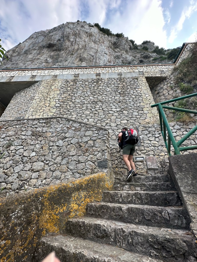 Walk along the windy road to Maiori. We started the 25 minute walk to Maiori when we came across a staircase to the beach about 10 minutes in!