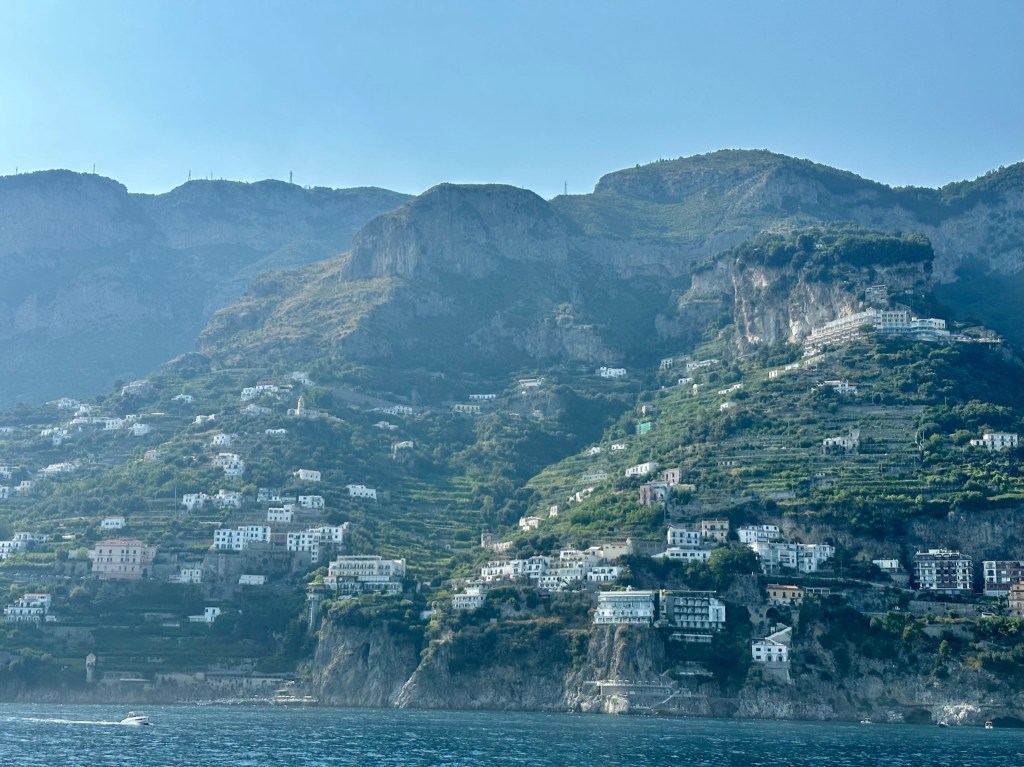 There were about 6 people on this ferry and we could actually go outside, so it was so much better than the ferry to Capri. Breathtaking views were in front of us as we approached the town.