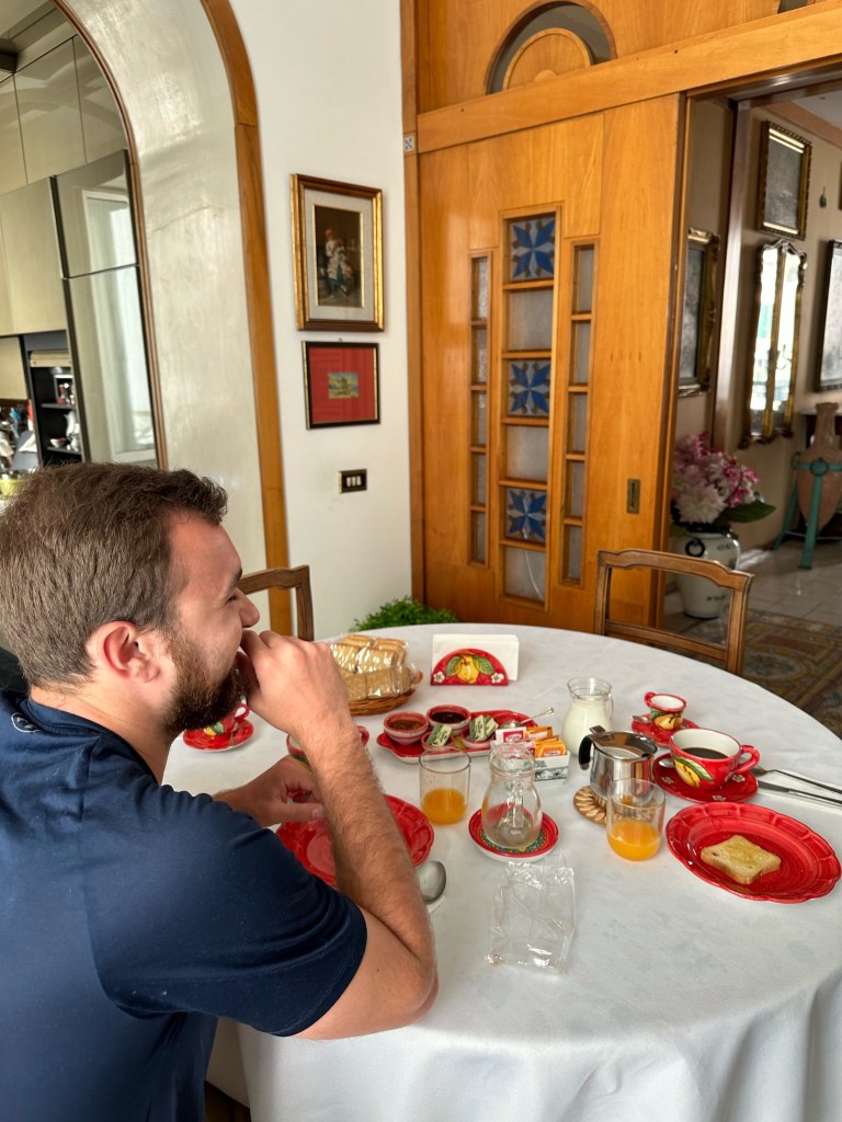 Our day started by trying to check out of the airbnb, but Enzo insisted we at least have breakfast. He made us delicious coffee and put out bread with jams, as we looked at over the water. Upon saying goodbye, Enzo gave me freshly picked lavender from his garden. So sweet!