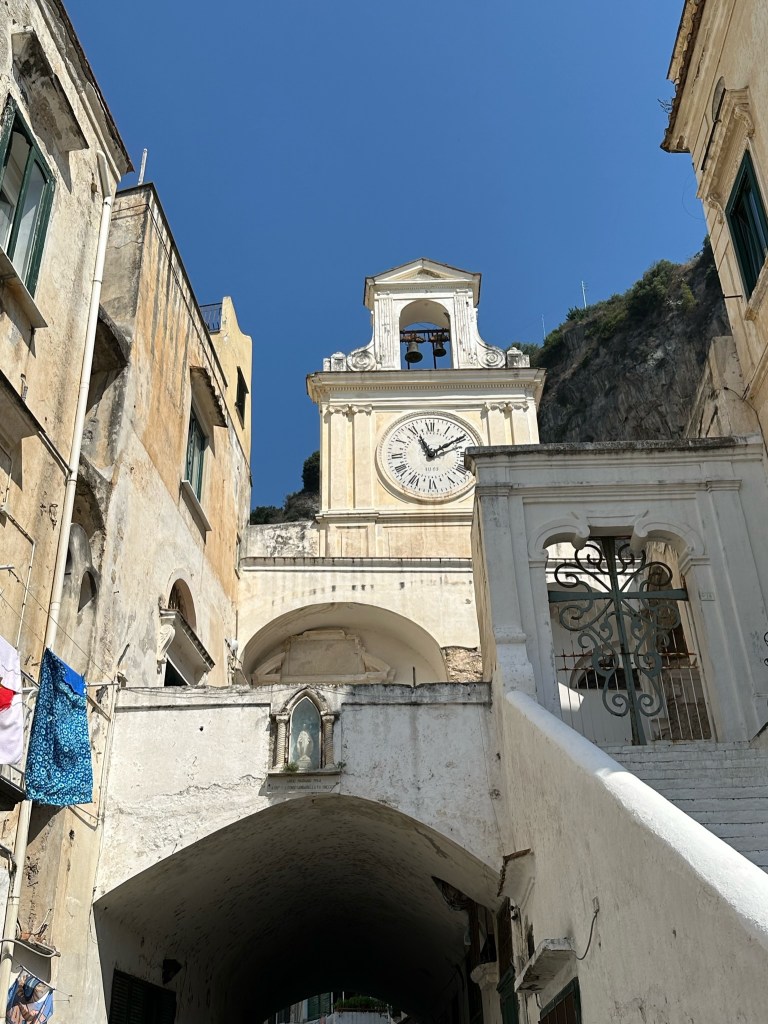 Atrani was quite small, so it won’t take long to explore the center. There are beautiful buildings, clocks, and paintings/art all over the town.
