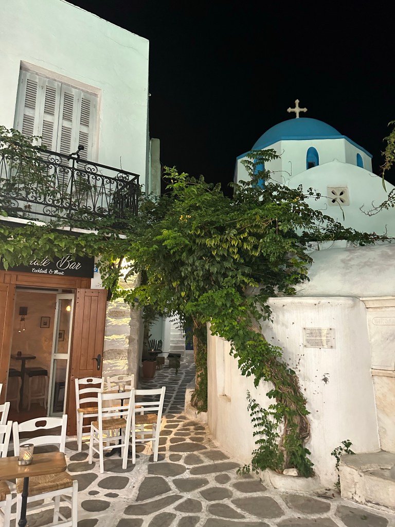 We arrived to Paros from Santorini at 8 pm after riding the Blue Star Ferry. We checked into the hotel in Parikia and began walking the streets.