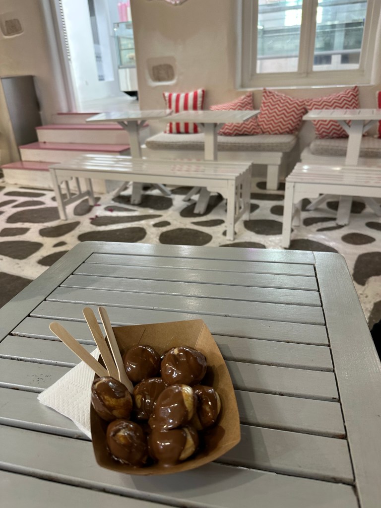 We all bought necklaces with the Greek eye on it from boutique shops. It felt more expensive here, which is in line with how I’ve been told it is “bougier.”