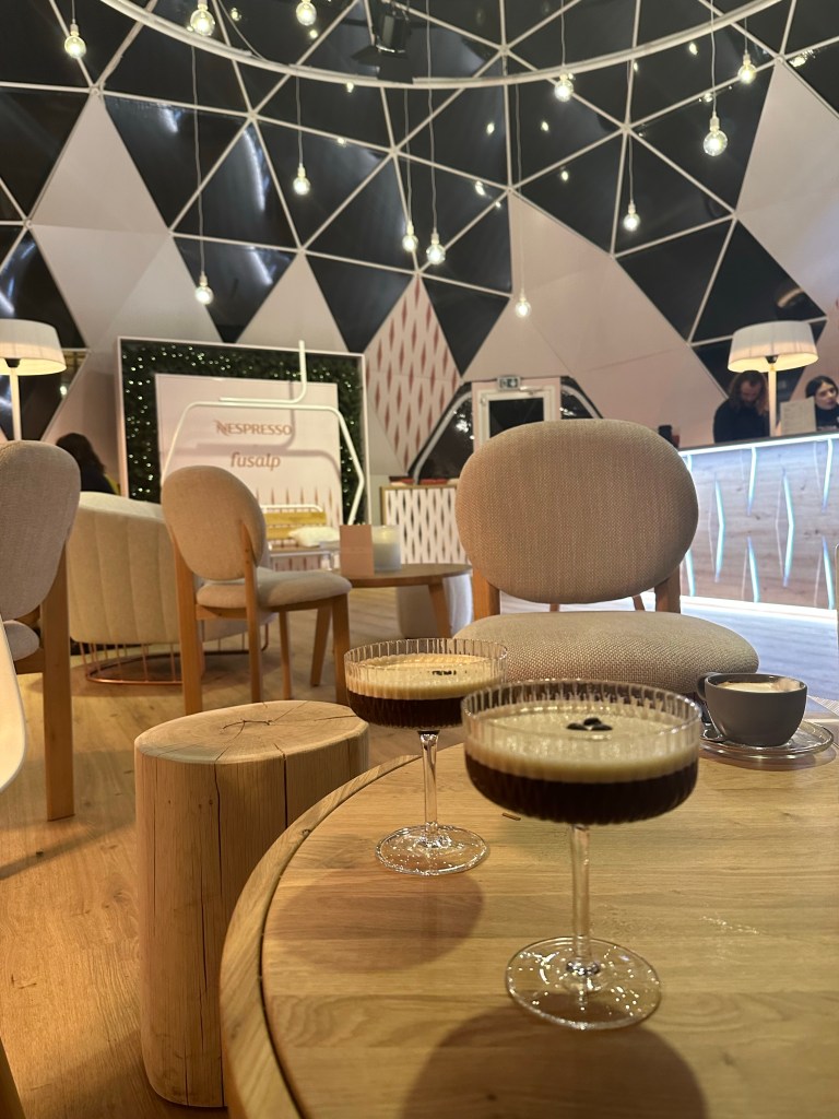 After leaving the restaurant full of cheese, bread, potatoes, and beer, we walked to the Nespresso pop up tent for an Espresso Martini pick me up.