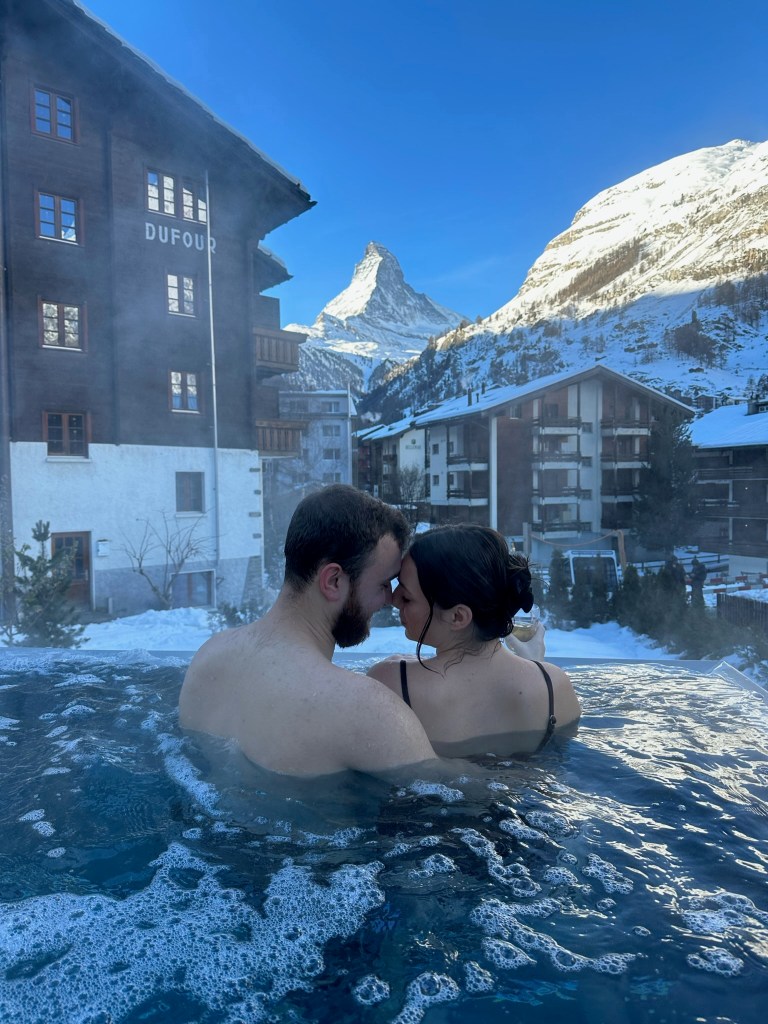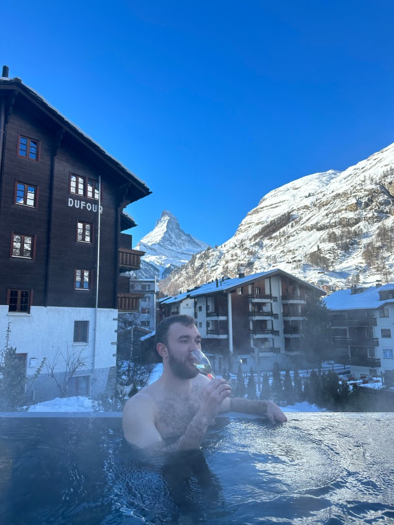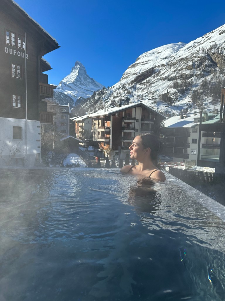I had a vision of myself sitting in a hot tub with a view of the Matterhorn, but really wasn’t sure how that would become reality. There were a few very expensive spas, but I only wanted to go for a couple hours, so they weren’t worth it. Then I came across Hotel Capricorn‘s PRIVATE Spa offer. I wasn’t sure if we were being scammed when I saw it online because the deal was so great. While we were there, it was nothing short of a dream.