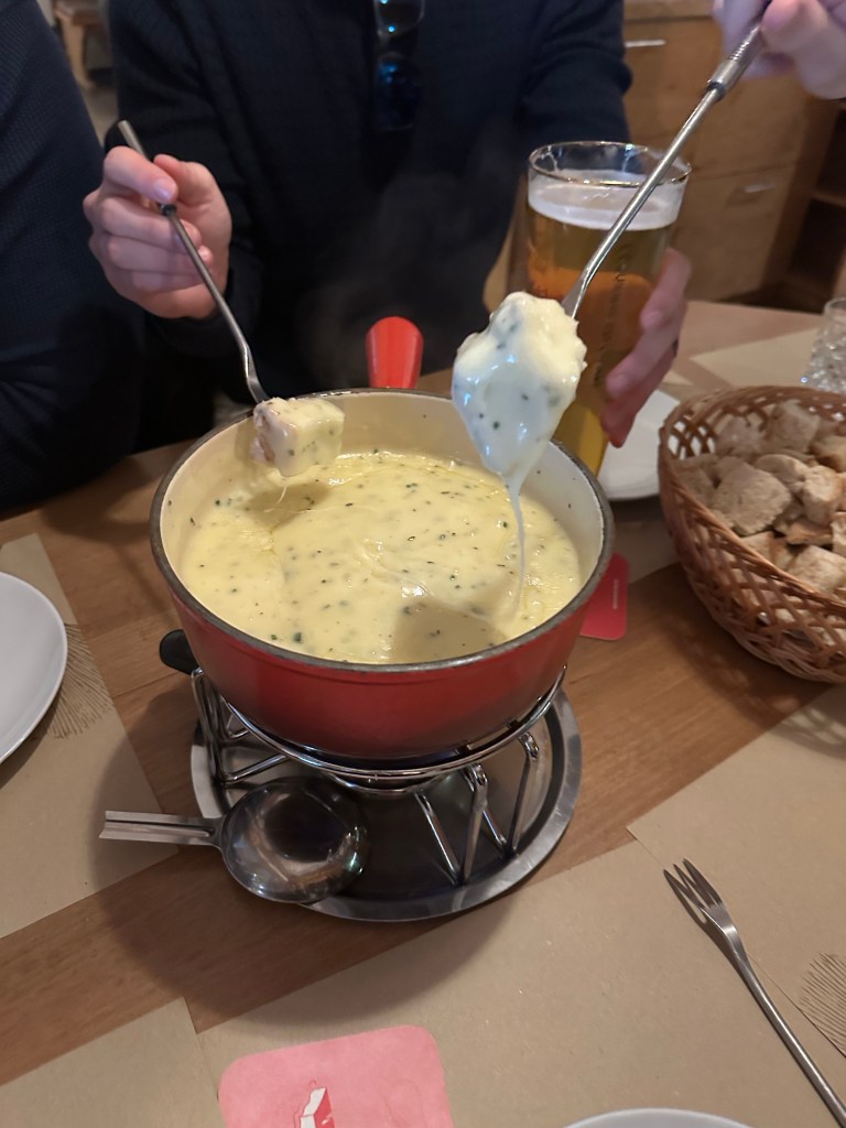 We found a restaurant, Pollux Pinte, with delicious fondue and reasonable prices. Numbers 1 & 2 were checked off from our list this first night, as we enjoyed our 1 fondue split between 7 people, and a few Rosti plates.