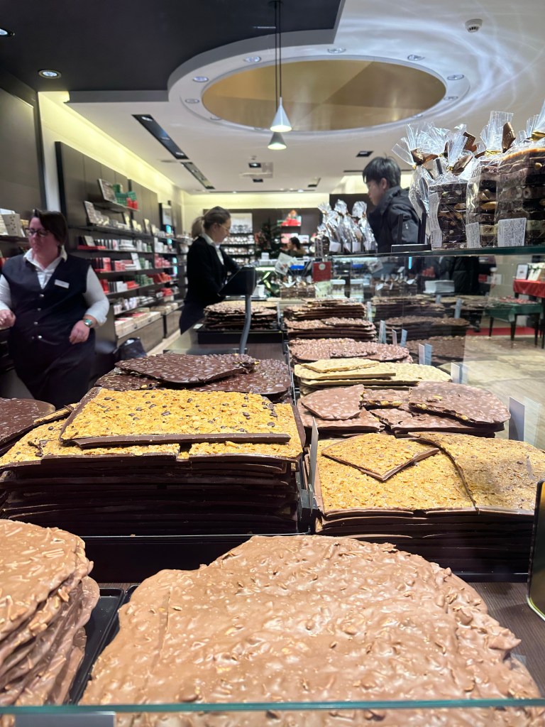 As you walk, you will run into many restaurants, cafes, grocery stores, boutiques, chocolate, and Swatch stores.