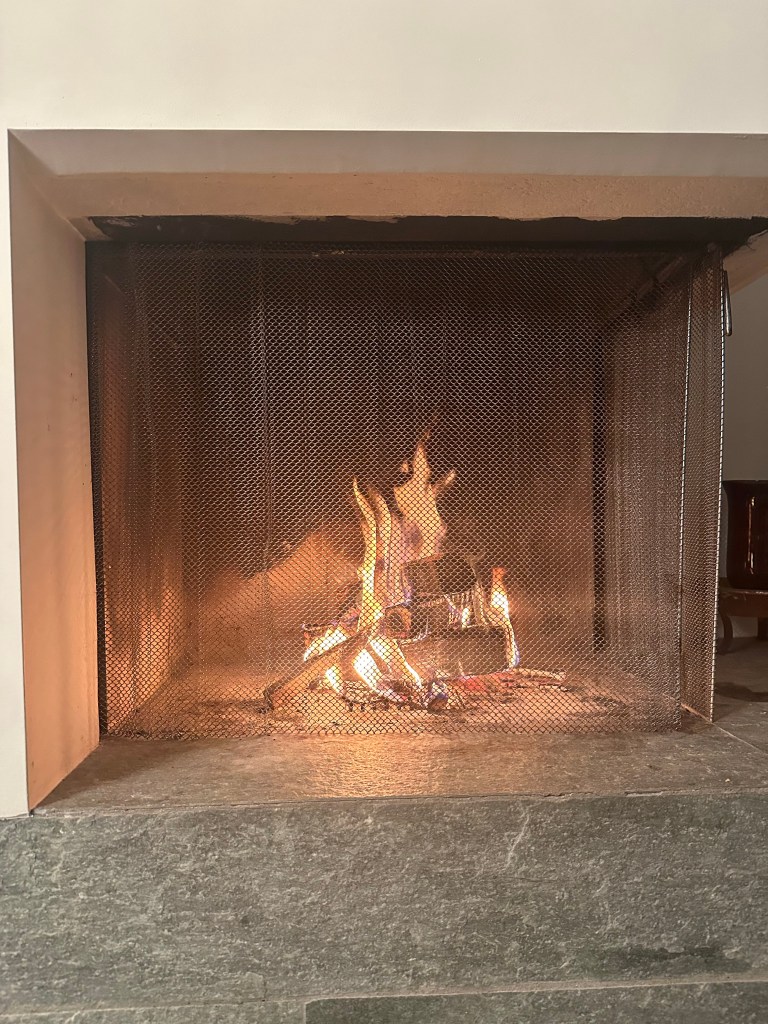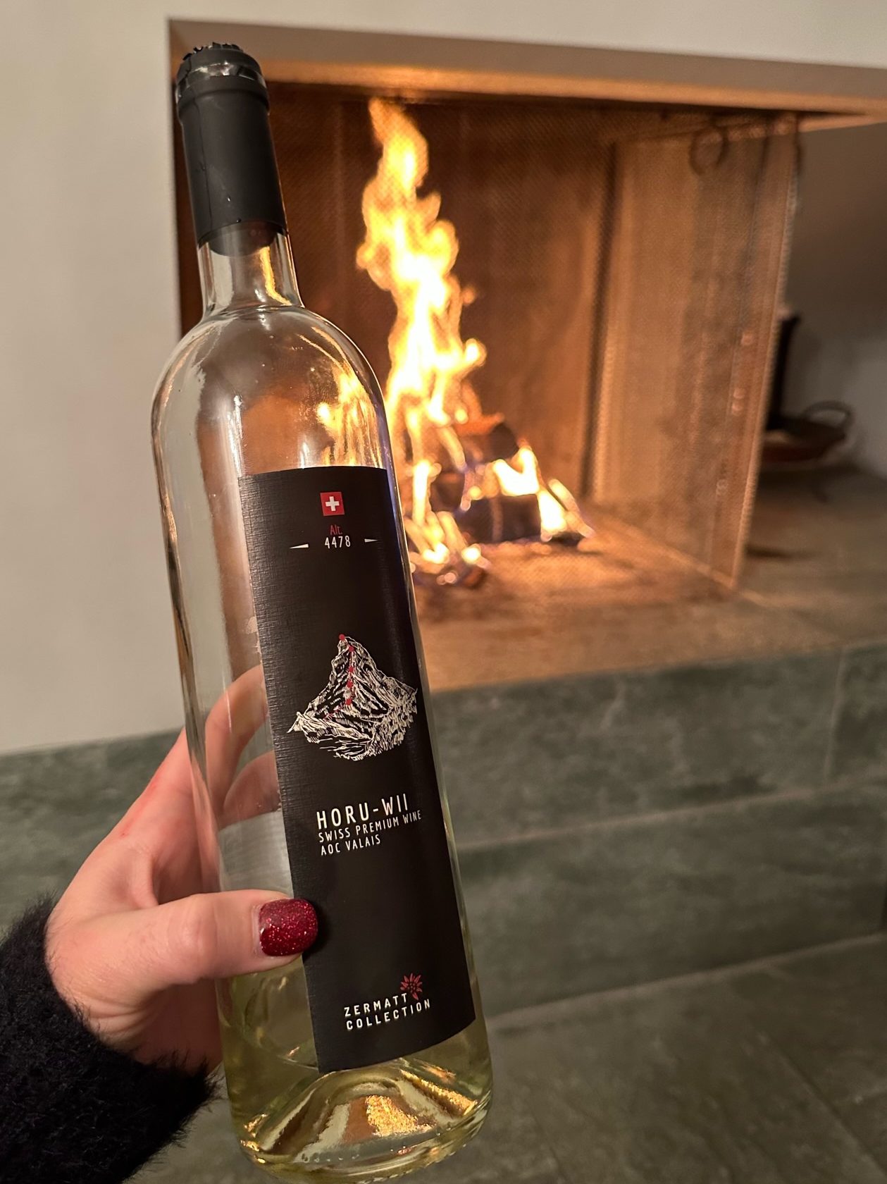 A relaxing last night in Zermatt with a crackling fire, Swiss wine, games, and a Christmas movie.