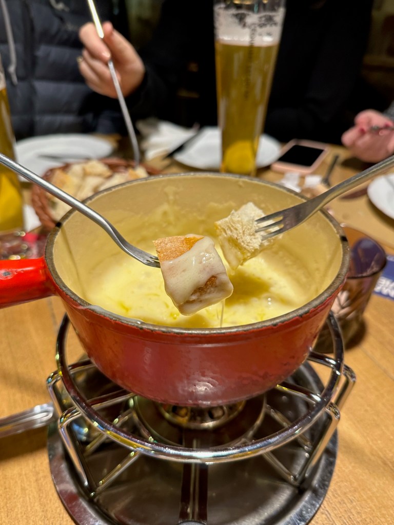 (Tip: It is common that the restaurant will charge you per person for fondue. Pollux did not charge per person, so we were able to split the 20 francs for 1 fondue. Just be careful or they might assume you need a whole portion per person, even though you only technically told them you wanted one fondue.)