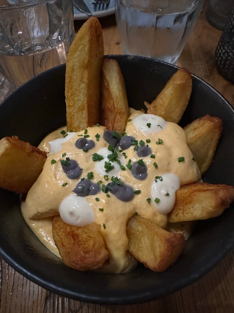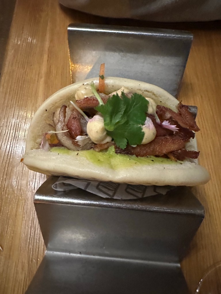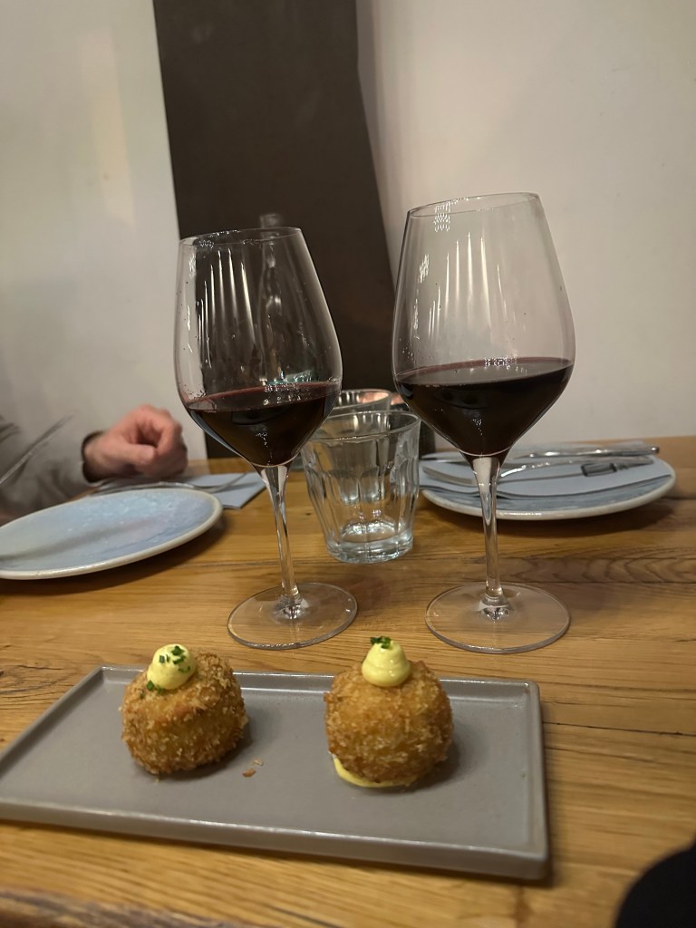Ombu Restaurant – I cannot recommend it enough for your first tapas experience! The food was such amazing quality and the wine made in Mallorca was exceptional. We ordered Chicken and pistachio croquette with curry mayonnaise, “Patatas Bravas” with sobrasada foam and charcoal aioli, Iberian pork bao bun with avocado, walnut oil and son tam salad, and red wine made in Mallorca – SA LLEBRE 2021.