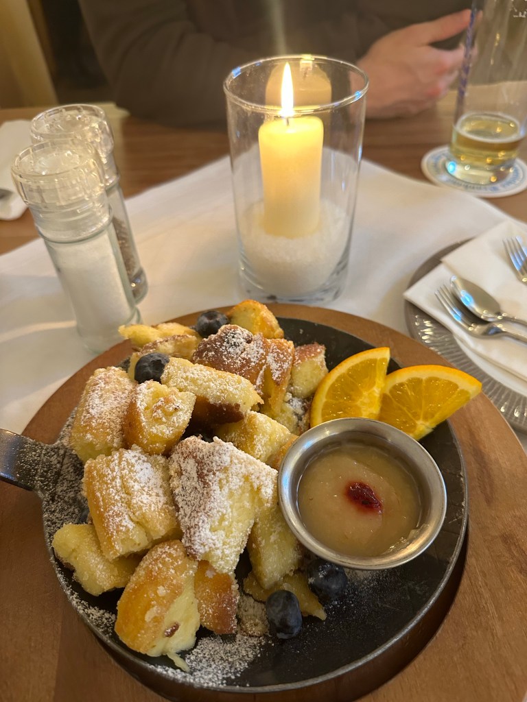 Now that we had some coffee and food into our systems, we decided it was time for beer! The walking path took us to a huge beer hall and restaurant, Schlosswirtschaft. We decided to try hausgemachter kaiserschmarrn, a traditional German dessert, which is similar to pulled pancake with fruit.