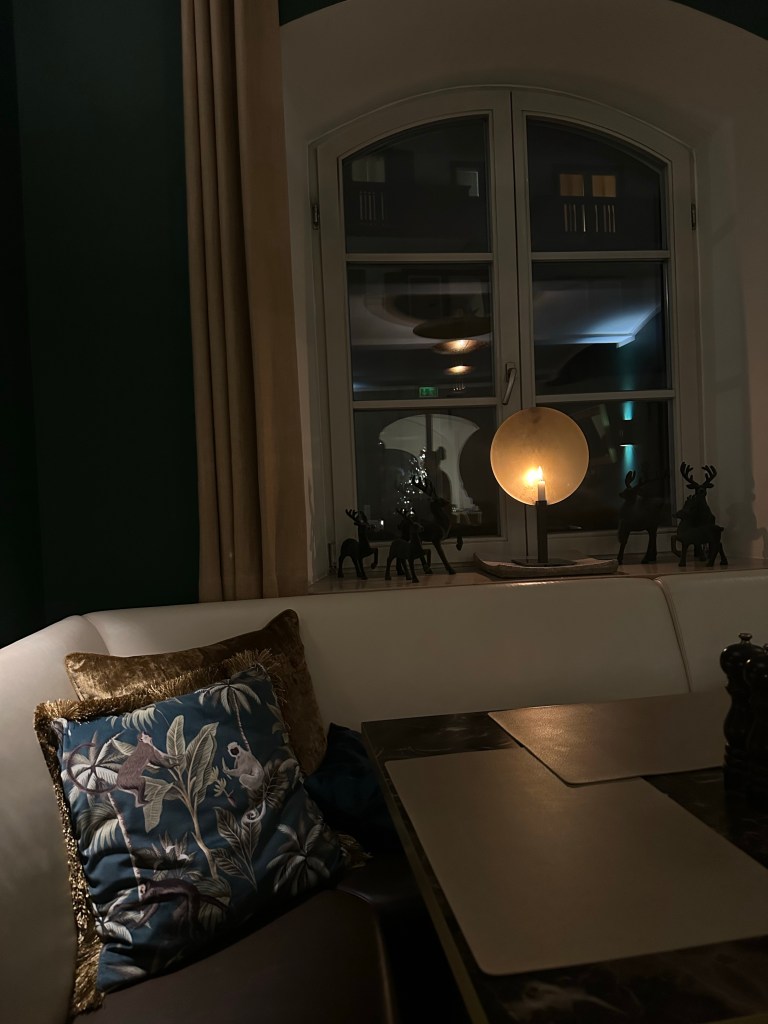 The snow rapidly piled up, so we ate at our hotel this evening. To our luck, our hotel has one of the best rated restaurants and bars in the area, so we didn’t have to think too hard about this decision to stay in.