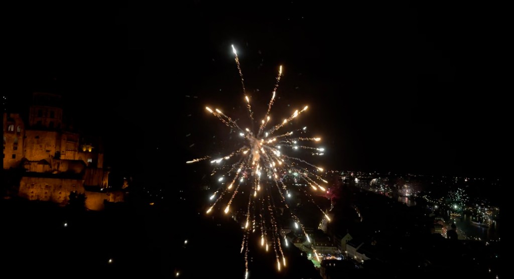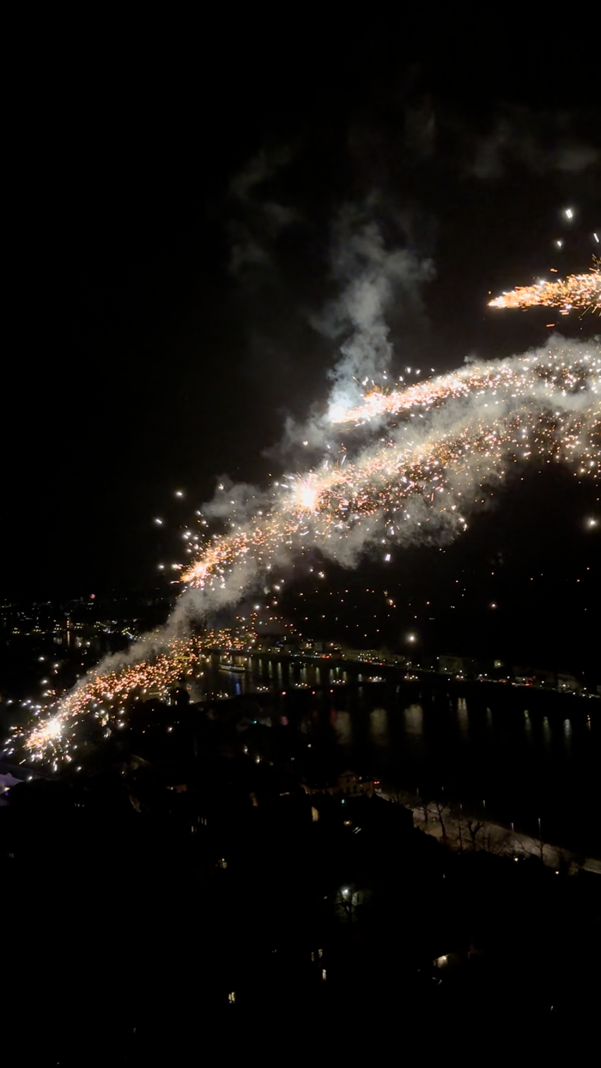 I have never experienced fireworks like this before. Since it is up to the Germans to set the fireworks off, they do it wherever they want! We had fireworks being set off right next to us and all along the railing of where we were standing, and under the viewpoint we were standing on! There were fireworks flying everywhere, and I was honestly kind of scared. So I seriously have never experienced this before!