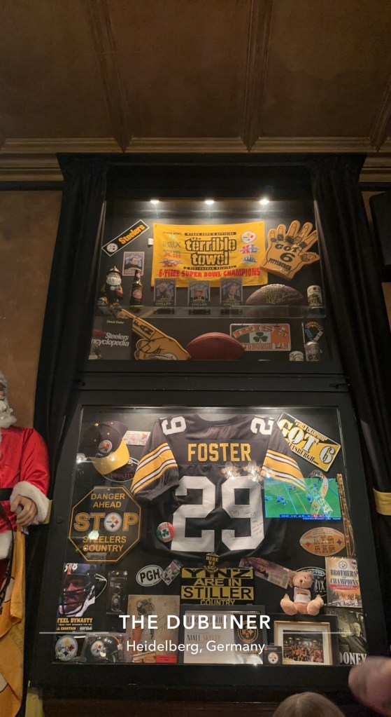 The Dubliner was especially fun for us because they had Pittsburgh Steelers decor! Andrew and I lived in Pittsburgh before moving to Germany.